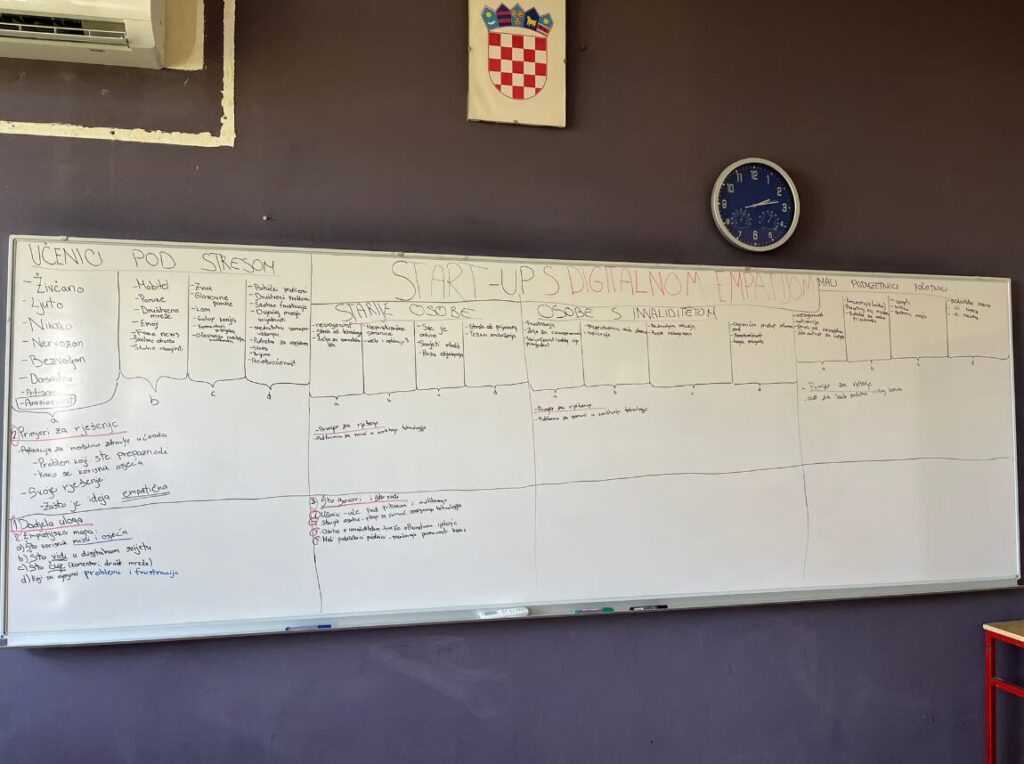 Nakon uvoda učenici su podijeljeni u skupine, pri čemu je svaka skupina dobila zadatak analizirati jednu ciljnu skupinu: starije osobe, učenike pod stresom, osobe s invaliditetom ili male poduzetnike početnike.