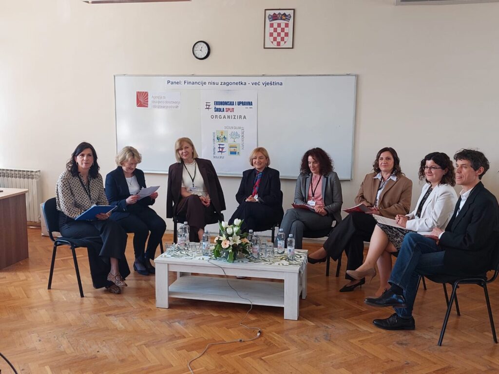 Na panelu su sudjelovali istaknuti i ugledni stručnjaci iz područja ekonomije, obrazovanja i financija, uključujući predstavnike Agencije za strukovno obrazovanje i obrazovanje odraslih, Hrvatske narodne banke, Ekonomskog fakulteta u Splitu te bankarskog sektora. Svojim znanjem, iskustvom i stručnim uvidima panelisti su značajno pridonijeli kvaliteti rasprave i otvorili ključna pitanja vezana uz financijsku pismenost mladih.