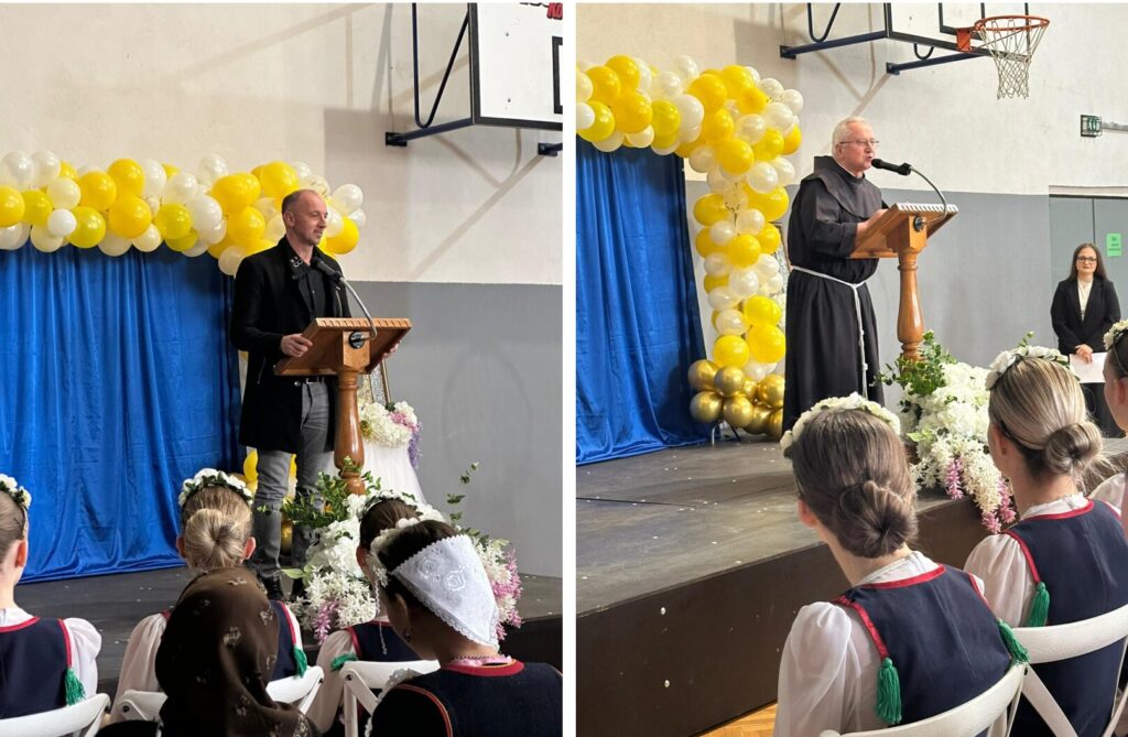 Ohrabrujuću riječ dobrodošlice uputili su i predstojnica Katehetskog ureda Splitsko-makarske nadbiskupije prof. dr. sc. Jadranka Garmaz, u ime Grada gosp. Denis Bobeta, u ime Svetišta fra Antonio Mravak, u ime nadbiskupa gvardijan fra Marinko Vukman koji je službeno proglasio natjecanje otvorenim. Poseban ugođaj stvorio je školski glazbeni sastav u kojem je pjevačica učenica Antea Kozina, pratnja na violini učenica Tina Krstić te na gitari pedagog Josip Alebić. Ljepotu, simboliku i vrijednost tradicijske ženske odjeće cetinskoga kraja pokazale su članice Tradicijske udruge Bitelić. Program otvaranja vješto je vodila učenica Jelena Jukić, a molitvene i književne tekstove izražajno čitale učenice: Mirjam Jagnjić, Lana Mihaljević i Gabriela Romac. Na kraju su svojim energičnim i usklađenim nastupom u etno odorama nastupile i sve oduševile naše svjetske prvakinje, Sinjske mažoretkinje, na čelu s voditeljicom Vesnom Samardžić.