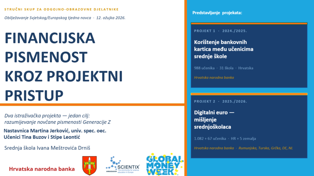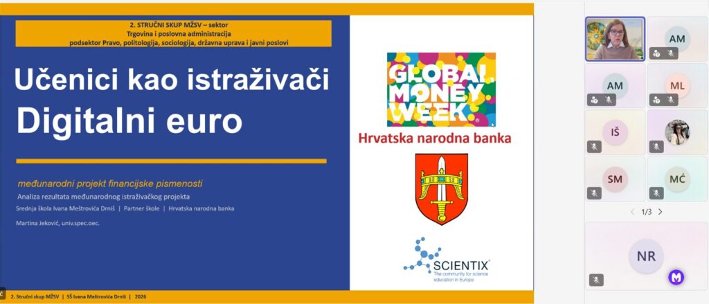 Ovim skupom obilježen je Svjetski i Europski tjedan novca 2026. Na skupu je voditeljica vijeća Martina Jerković, univ. spec. oec., održala predavanje „Učenici kao istraživači: Digitalni euro – mišljenje srednjoškolaca“ te predstavila rezultate međunarodnog istraživačkog projekta u kojem su i naši učenici sudjelovali zajedno s profesoricom Nadom Ratković.
