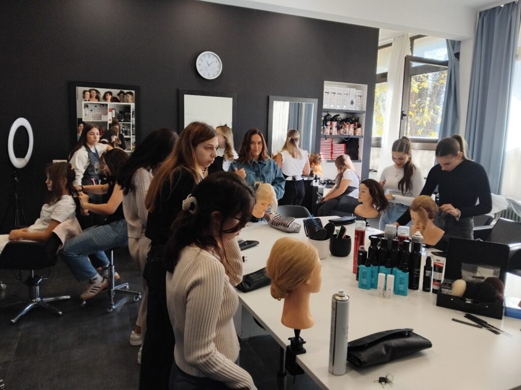 - Radionicu Izrada svečane frizure vodila je je strukovna nastavnica Antonija Bikić Šušnjara. Korak po korak učenicima je demonstrirala izradu svečane frizure uz upotrebu modernih tehnika i alata. Poslije je savjetima popratila učeničke radove na lutkama.