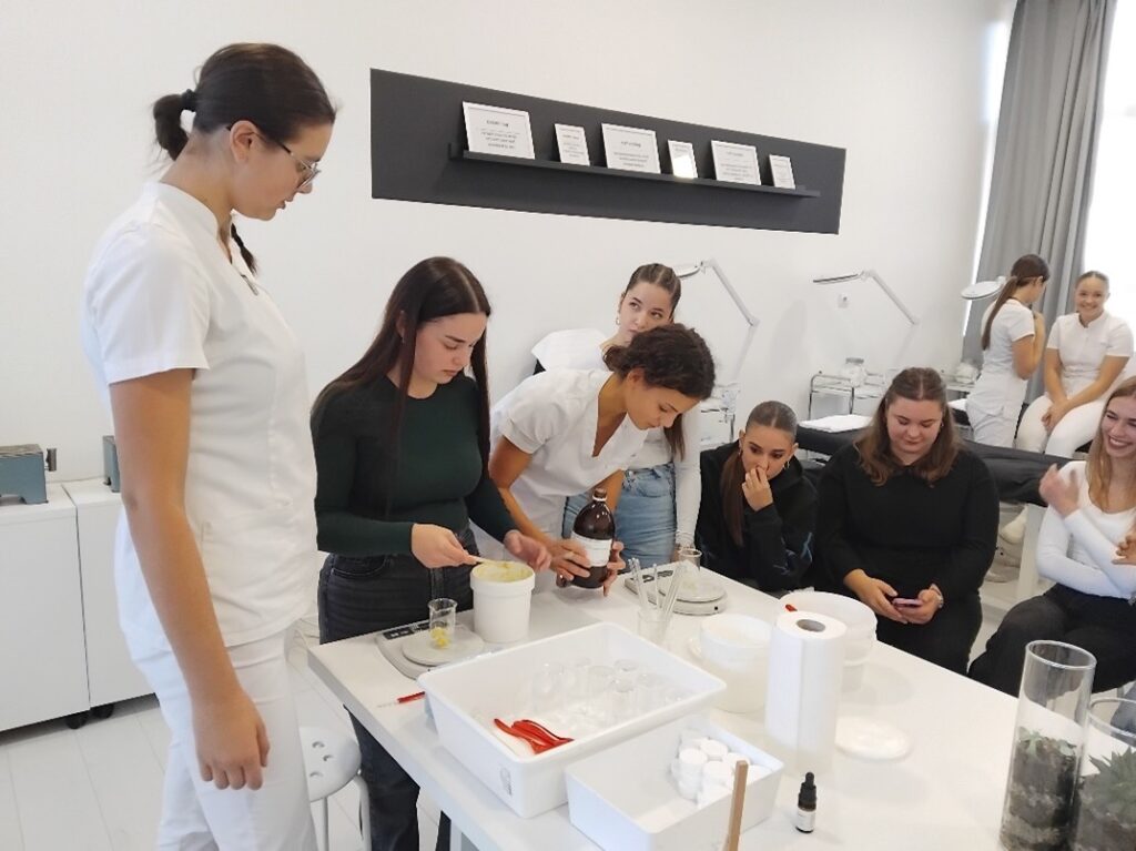 U školskom kozmetičkom kabinetu je održana radionica Make-up 20.stoljeća. U uvodnom predavanju predstavljeni su trendovi koji su se kroz povijest vrlo brzo mijenjali. Na početku 20.stoljeća se make-up smatrao nepristojnim, koristile su ga uglavnom glumice, za potrebe kazališta i filma. Cijenio se prirodan izgled, koji je postignut laganim puderom i ružem u nježnim tonovima. Dvadesetih godina prošlog stoljeća žene se počinju boriti za svoja prava (pravo glasa na izborima, pravo na rad, pravo na obrazovanje) i to pokazuju svojim izgledom (tamni ruž, tanka zaobljena obrva, crni eyeliner i kratka kosa). Tijekom Drugog svjetskog rata cijenio se jednostavan make-up uz crveni ruž, kao simbol snage i ženstvenosti. Nakon toga svako novo desetljeće donosi promjenu u make-up-trendu. Od prirodnom izgleda i minimalnog make-up-a do ekstravagancije i jakih boja sjenila i ruža za usne.