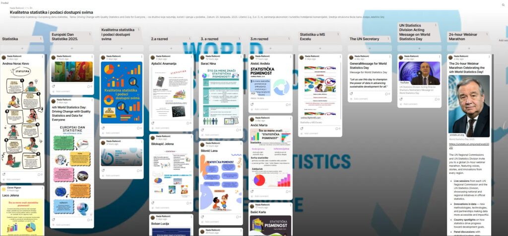 Na digitalnoj ploči Padlet se mogu vidjeti njihovi digitalni plakati, infografike, kodirani prikazi i kratke refleksije o značenju kvalitetnih podataka i važnosti statističke pismenosti.