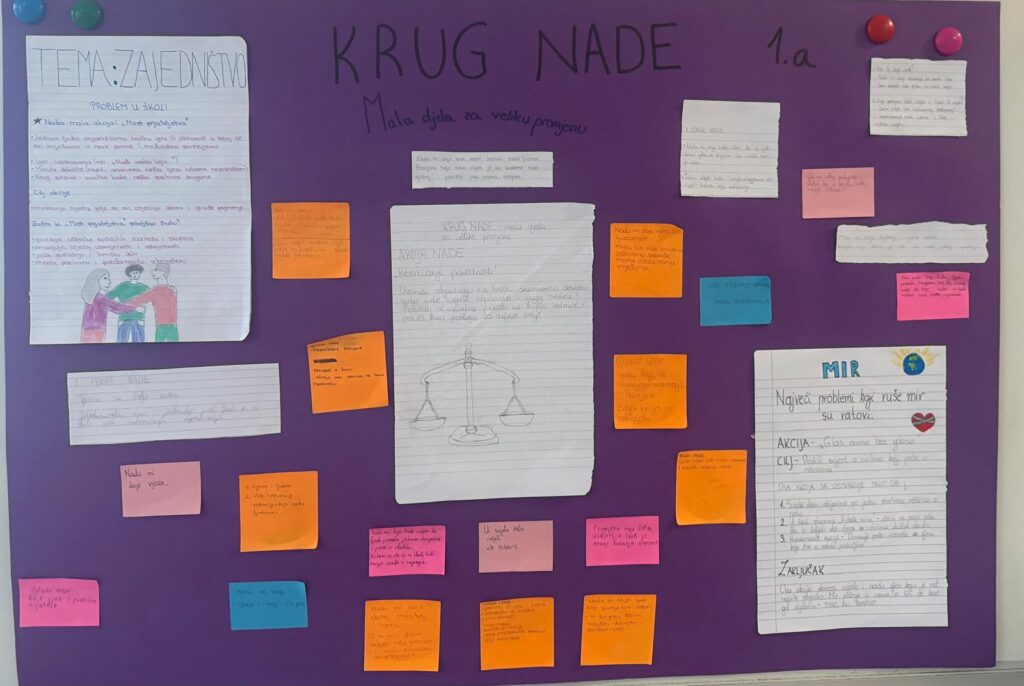 Učenici 1.a razreda pokazali su visoku razinu angažiranosti i kreativnosti. Svaka skupina je osmislila konkretnu akciju koju su spremni provoditi tijekom cijelog tjedna. Mini-plakati izrađeni tijekom radionice izloženi su u učionici, čime je krug nade postao vidljiv i ostalim učenicima.