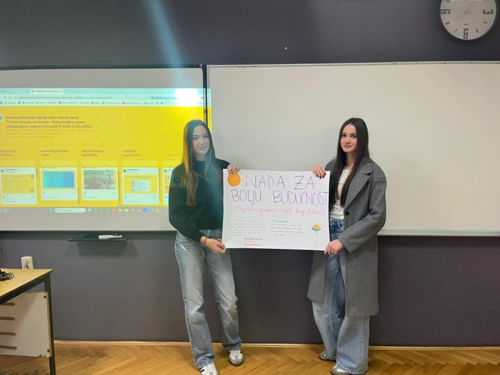 Učenici 1.a razreda, smjera Referent za poslovnu ekonomiju, sudjelovali su 20. studenoga 2025. u nastavnoj aktivnosti u okviru modula Uvod u poduzetništvo, pod vodstvom profesorice Nade Ratković. Aktivnost je realizirana kao dio obilježavanja Globalnog tjedna obrazovanja (17.–24. studenoga 2025.), koji je ove godine posvećen temi „Nada u akciji – za pravednu, mirnu i održivu budućnost“. U tom je kontekstu osmišljena radionica s ciljem poticanja učenika da promišljaju o osobnoj i društvenoj nadi te da kroz male, konkretne korake doprinesu pozitivnim promjenama u školskoj i lokalnoj zajednici.