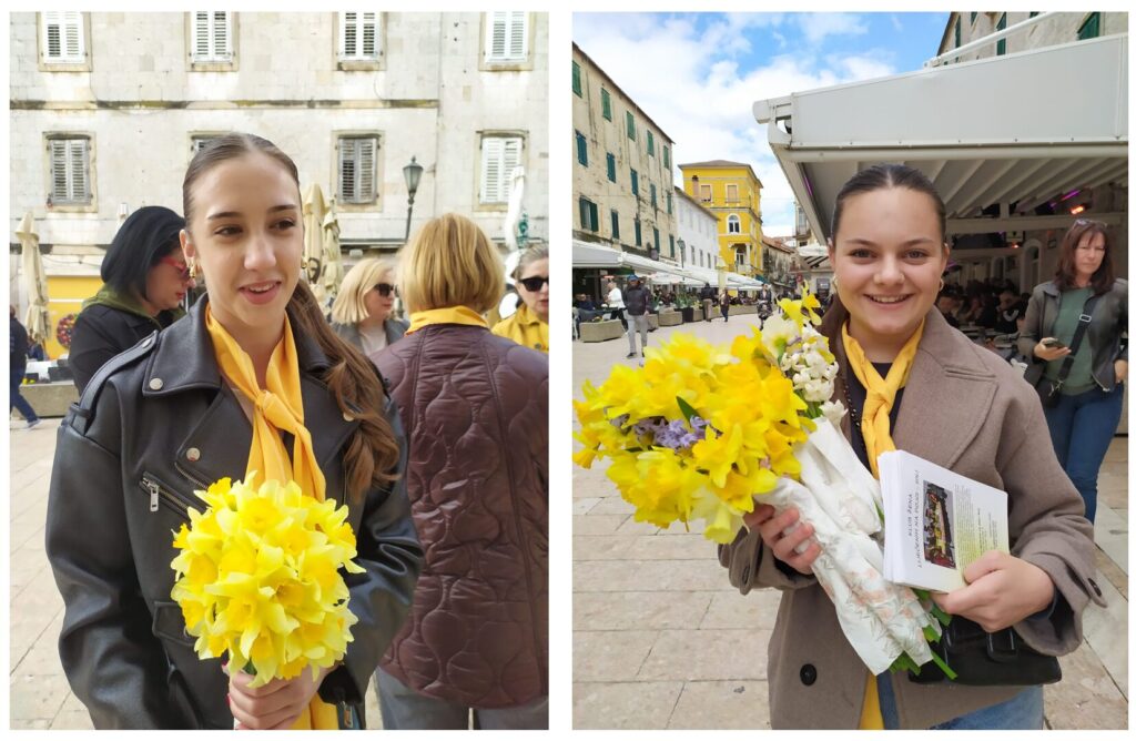 Članice školske volonterske zajednice, Sara Šušnjara i Petra Šuste, učenice 1. e razreda sudjelovale su na sinjskoj pijaci u humanitarnoj akciji obilježavanja Dana narcisa, zajedno sa svojom nastavnicom Helenom Balajić, prof. mentor.